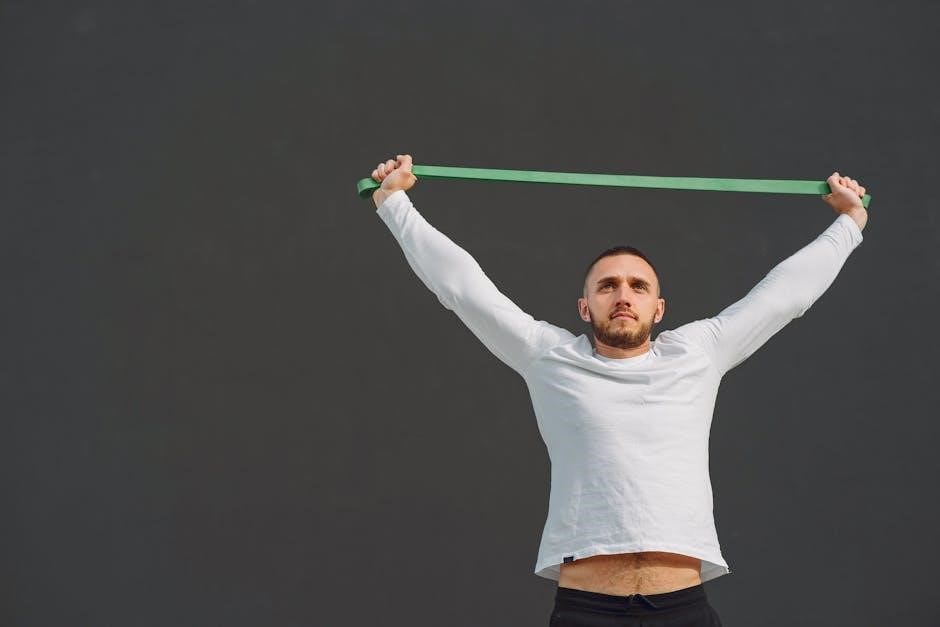 Slowly lower your arms back to the starting position, maintaining tension on the band․ Perform 10-15 repetitions per set, adjusting the band’s resistance to challenge your muscles appropriately․